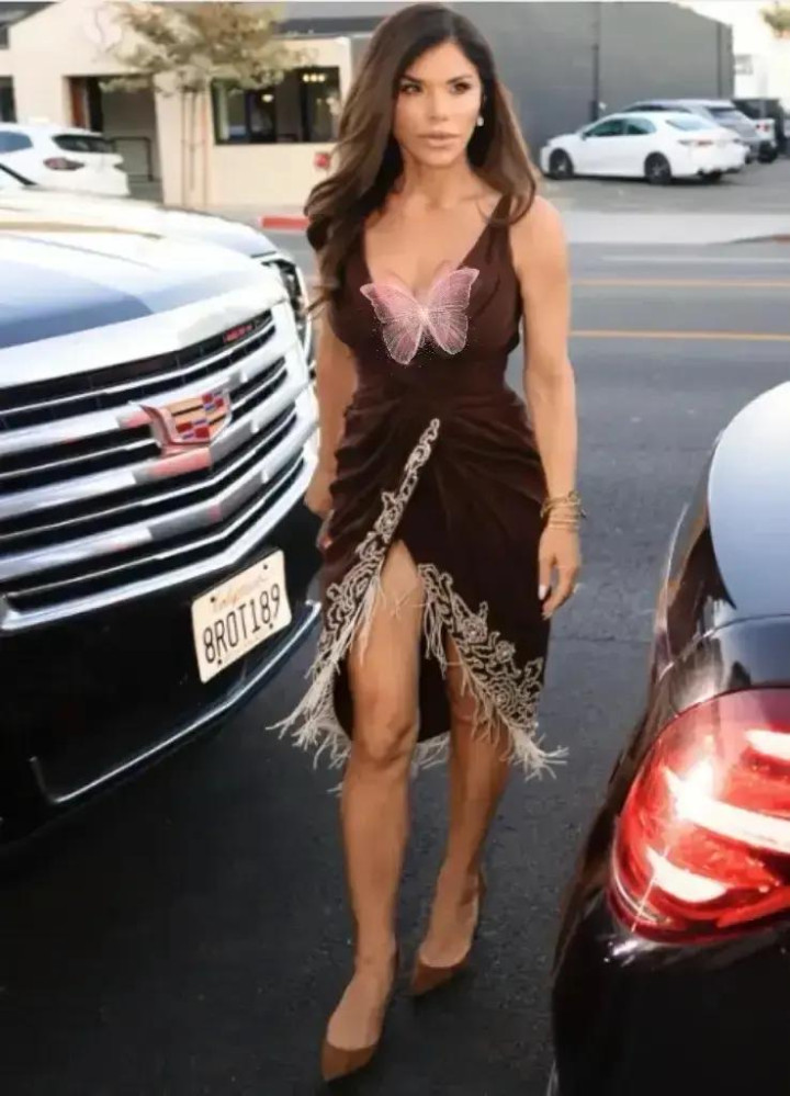 桑切斯迈着大步在停满豪车的空隙轻松跨过,这一套裙子显然不适合她,她腿太短,很粗,并且不直,根本get不到这件衣服的美感。