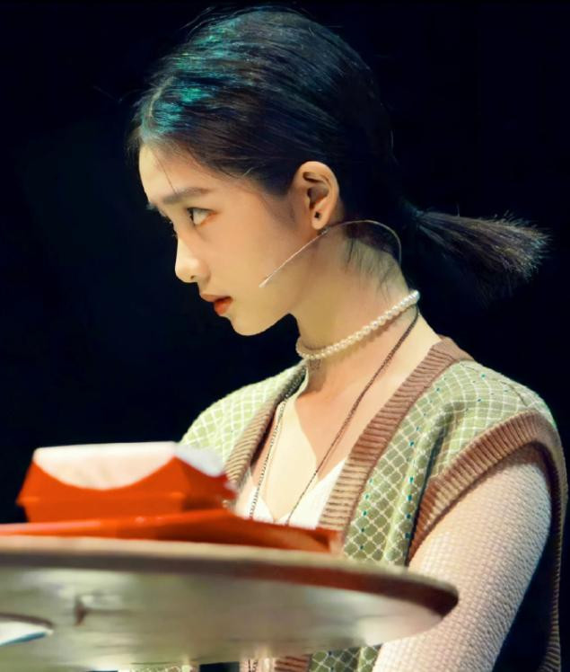 长大后的多多褪去了婴儿肥,整张脸线条流畅又格外精致,戴着珍珠项链尽显优雅,完全就是文艺片女主的气质。