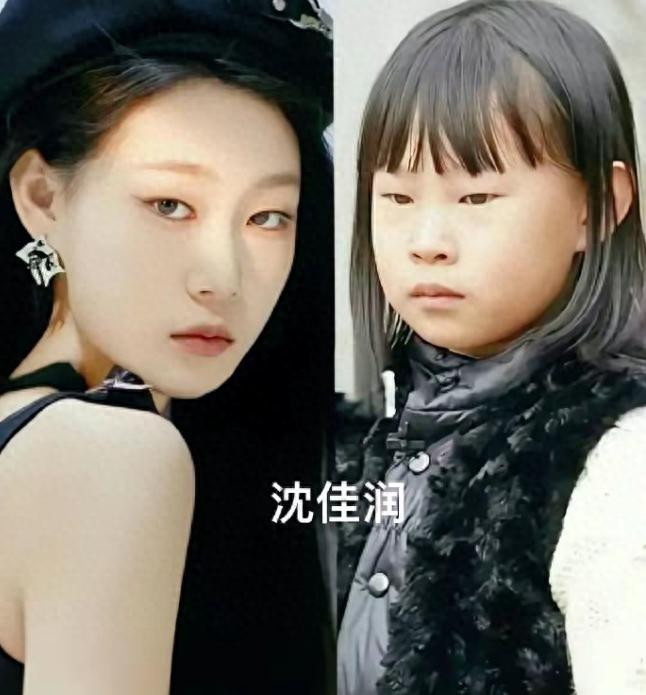 长大后的沈佳润还蛮适合韩妆风格,遗传自父亲的眼睛在妆容的加持下也很有高级感,和小时候判若两人。