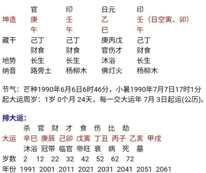 庚为夫,坐午火,地支全是官杀的克星,丈夫压力也很大。