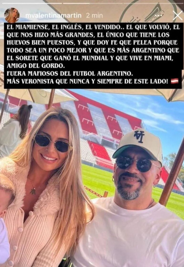 罚单一出,舆论哗然。大学生俱乐部董事会发表声明力挺被罚人员,贝隆的妻子瓦伦蒂娜在社媒账号将阿根廷足协称为“阿根廷足坛的黑手党”,并呼吁全体球员罢赛迫使足协主席塔皮亚下台。阿根廷总统米莱甚至取消了与足协主席塔皮亚一道参加2026年世界杯抽签仪式的行程,以示不满。事情一波三折,真是每一个环节都充满了荒诞。