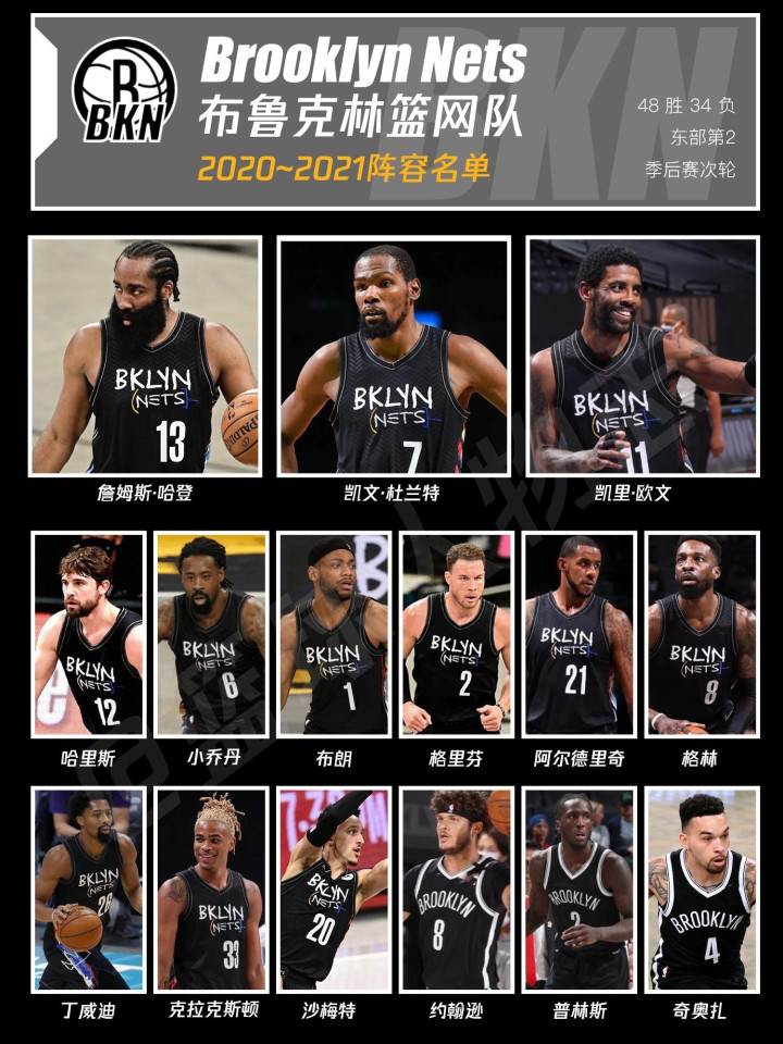 2020-2021赛季篮网队阵容名单。“可惜没如果”